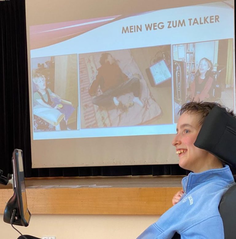 Mein Name ist Laura Blaschke, ich bin 21 Jahre alt, komme aus Karlsruhe und spreche seit ich 5 Jahre alt war über einen Talker mit Augenansteuerung. Seit ich 10 Jahre alt war, halte ich Vorträge. Dies macht mir immer sehr sehr viel Freude! Ich organisiere zusammen mit meinem ehemaligen Fachlehrer für Unterstützte Kommunikation den Talker-Stammtisch in Karlsruhe und möchte sehr gerne auch Unterstützt Kommunizierende Referentin werden.